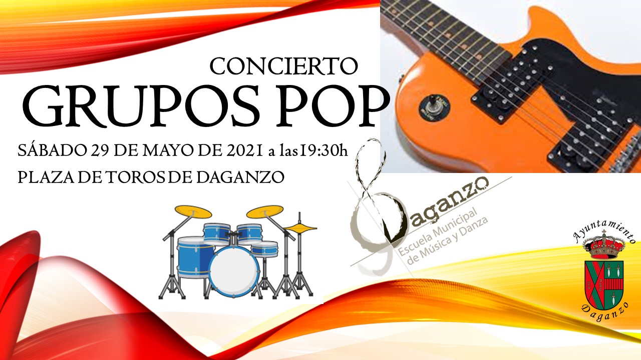 CONCIERTO DE LOS GRUPOS POP DE LA EMMD EL 29 DE MAYO A LAS 19:30 EN LA PLAZA DE TOROS DE DAGANZO.