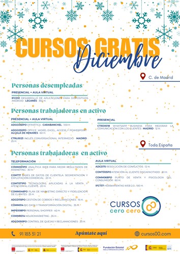 CURSOS GRATUITOS PAR DESEMPLEAD@S y TRABAJADOR@S EN ACTIVO DICIEMBRE