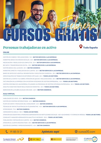 CURSOS GRATUITOS PAR DESEMPLEAD@S y TRABAJADOR@S EN ACTIVO FEBRERO