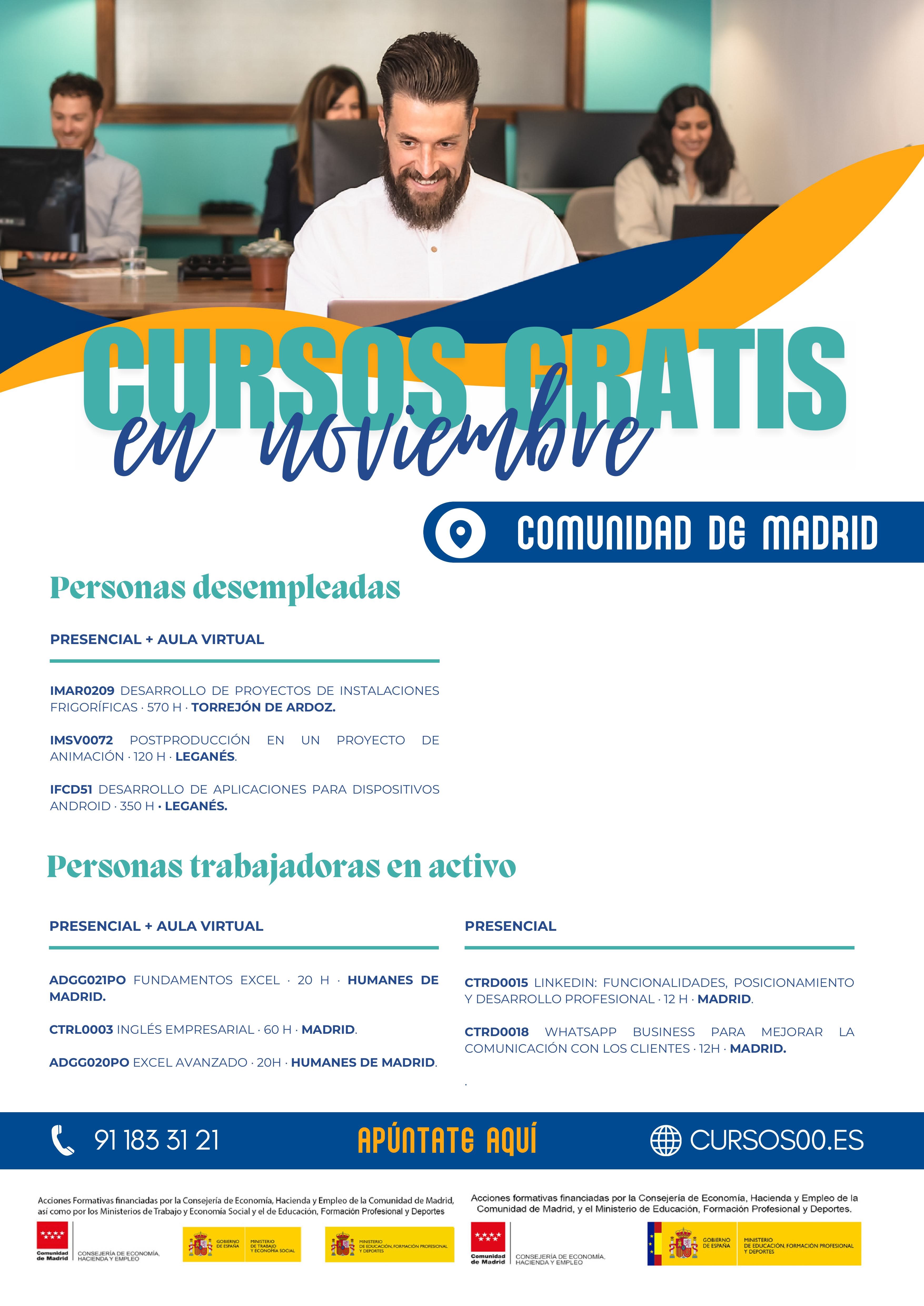 CURSOS GRATUITOS PAR DESEMPLEAD@S y TRABAJADOR@S EN ACTIVO NOVIEMBRE