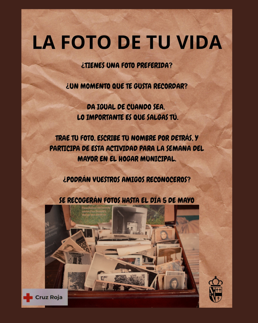Si queréis participar, solo tenéis que llevar una foto al Hogar del Mayor.... la que más os guste, la que tenga un significado especial, de hace poco, de hace mucho, da lo mismo mientras salgáis vosotros.