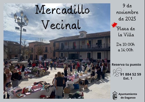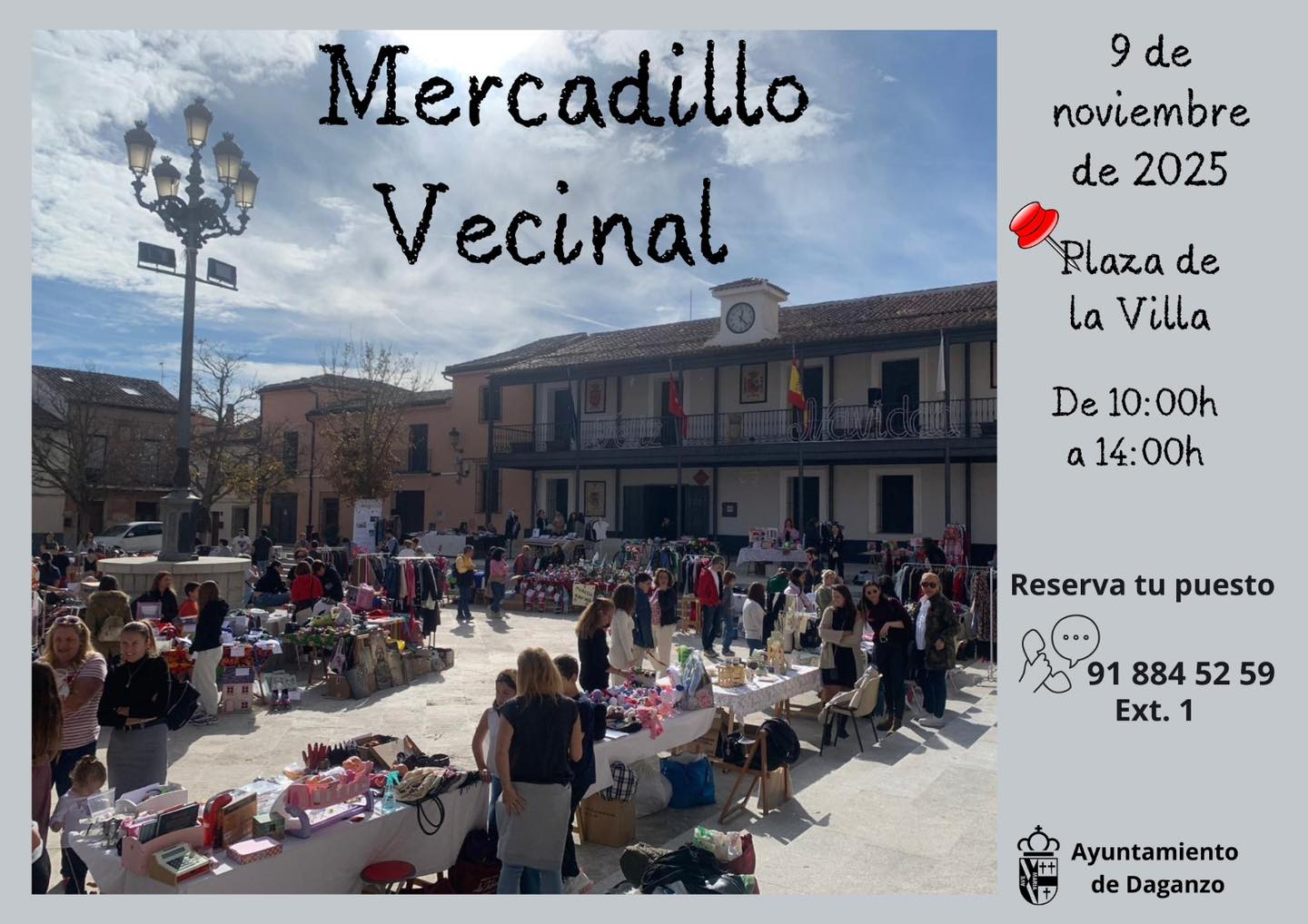 Domingo, 9 de noviembre de 2025 Plaza de la Villa De 10:00h a 14:00h Inscríbete previamente en el Ayuntamiento de Daganzo 918 845 259 (ext. 1 – Atención al Ciudadano)