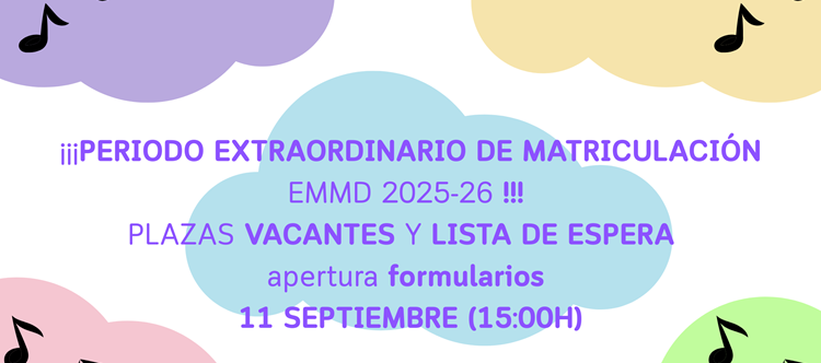 ¡¡¡ PERIODO EXTRAORDINARIO DE MATRICULACIÓN EMMD 2025-26 !!!