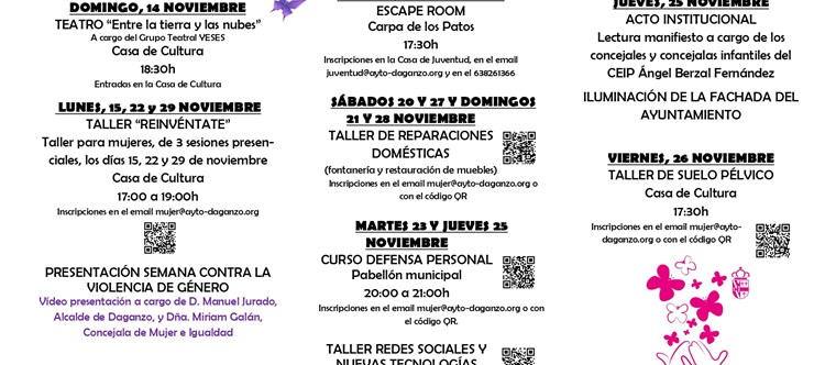 Para acceder a los formularios o apuntarse alguna actividad, escanea el código QR de cada actividad o escribe a mujer@ayto-daganzo.org