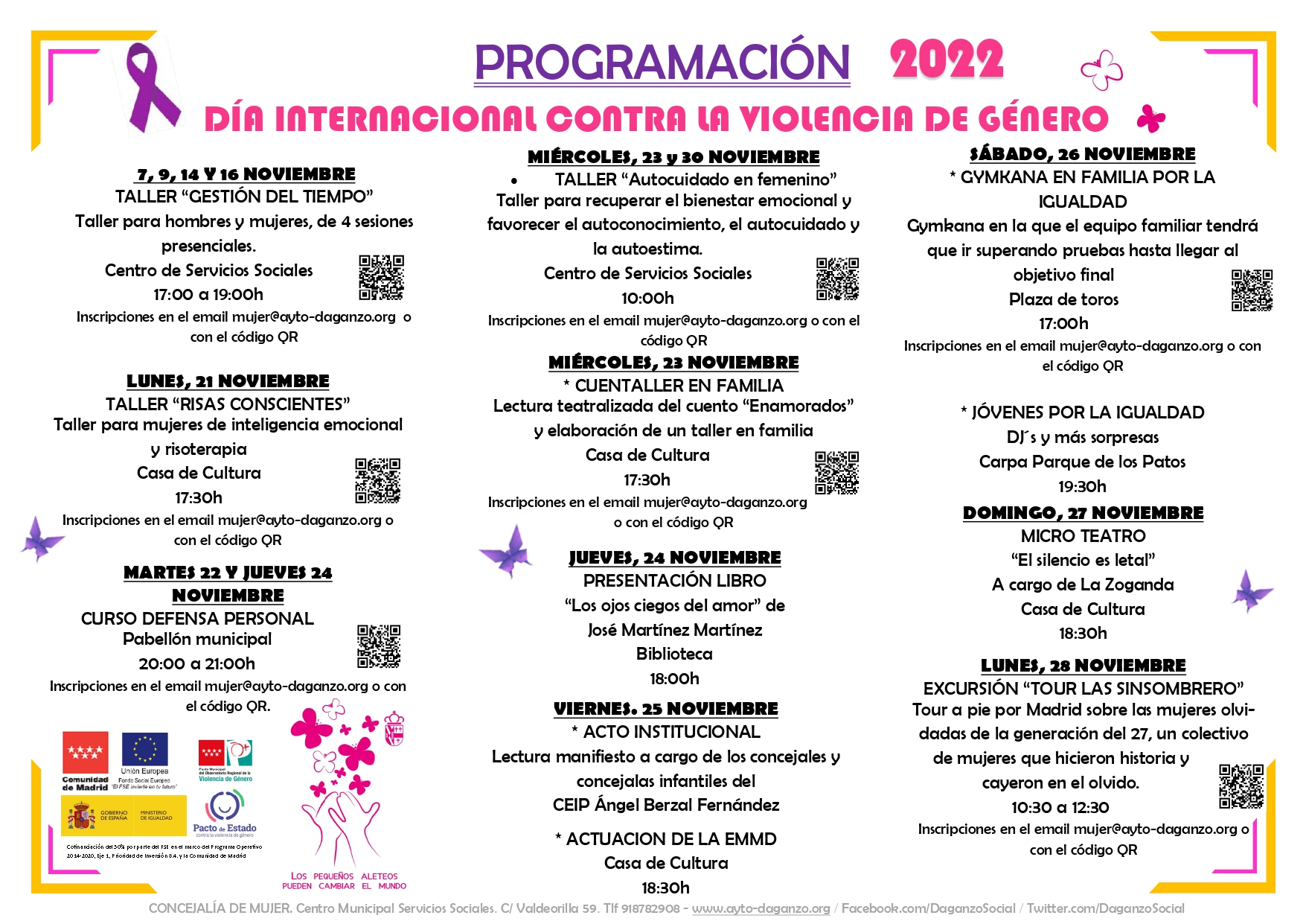 Para acceder a los formularios o apuntarse alguna actividad, pincha en los enlaces o escribe a mujer@ayto-daganzo.org
