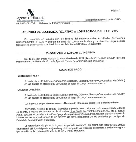 ANUNCIO DE COBRANZA RECIBOS IAE 2022 CUOTAS NACIONALES Y PROVINCIALES