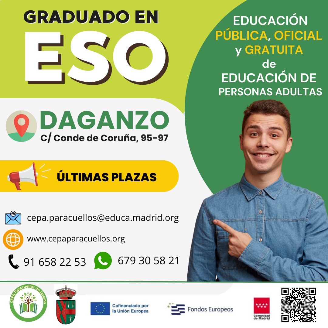 En el Centro Comarcal de Educación de Personas adultas de DAGANZO puedes graduarte en 1 año.