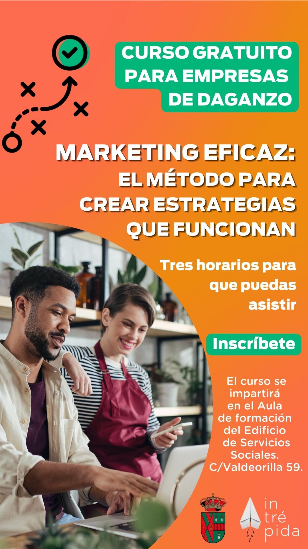 El Ayuntamiento de Daganzo de Arriba tiene la iniciativa de ofrecer de forma gratuita el curso de MARKETING EFICAZ: EL METODO PARA CREAR ESTRATEGIAS QUE FUNCIONAN, a todas la empresas de nuestro municipio, en los siguientes días y horarios: