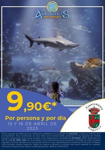 Para beneficiarse de esta oferta será imprescindible  presentar en las taquillas de Atlantis Aquarium Madrid documentos que acredite ser residente DAGANZO.