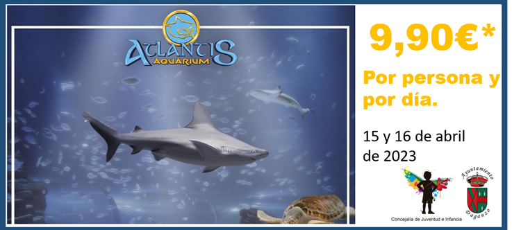 No acumulable a otros descuentos y/o promociones. Prohibida su venta. Consulta calendario, horarios de apertura y normas del centro en www.atlantisaquarium-madrid.es