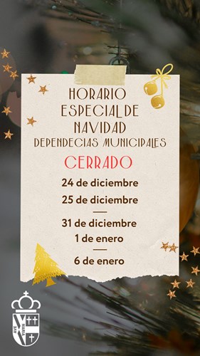 Os informamos de las fechas en las que el Ayuntamiento y las dependencias municipales permanecerán cerradas.