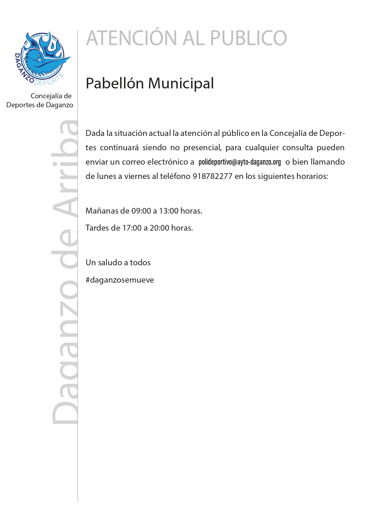 HORARIO ATENCIÓN TELEFÓNICA PABELLÓN MUNICIPAL DE DEPORTES