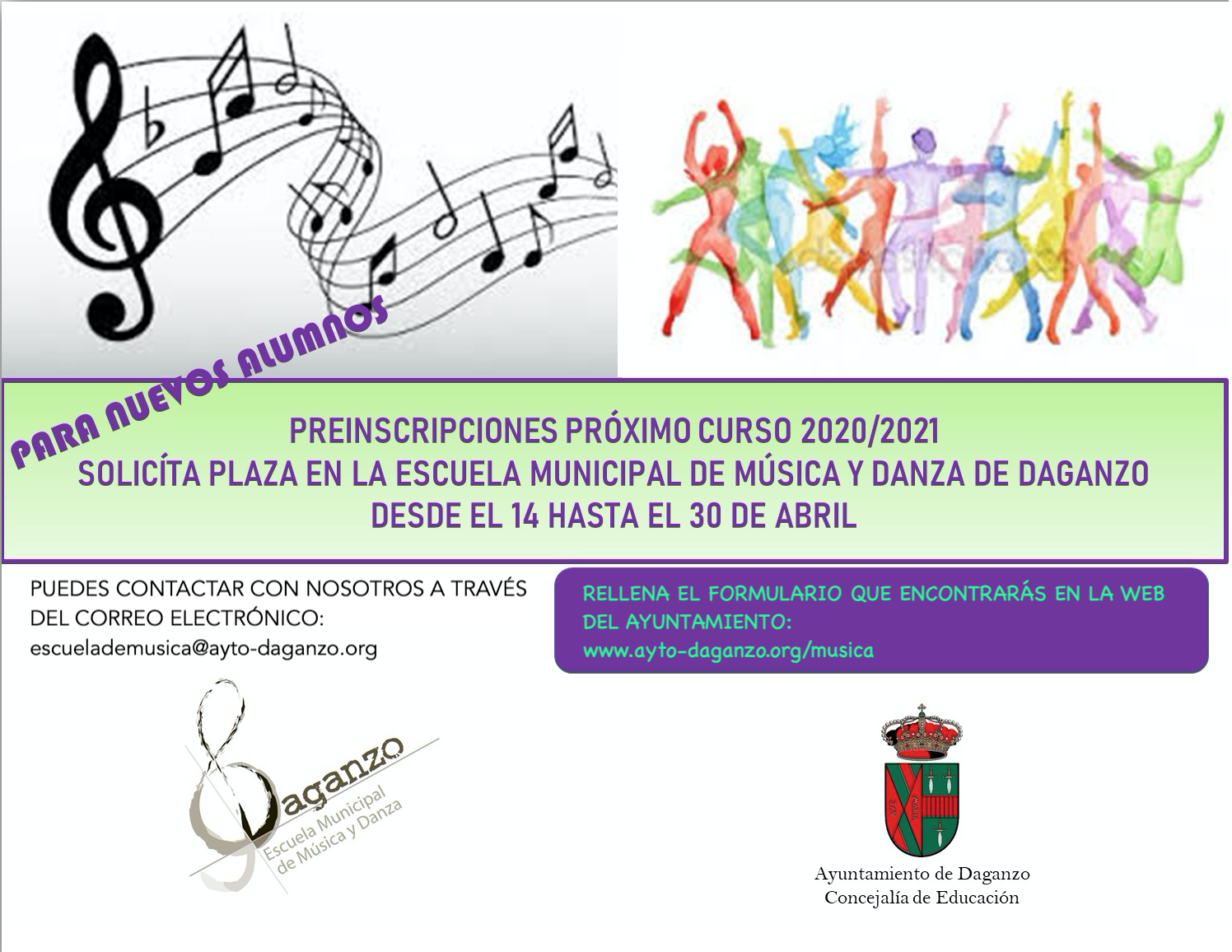 La EMMDD abre el plazo de preinscripción para nuevos alumnos desde el día 14 al 30 de abril. Esta preinscripción no garantiza la plaza disponible para el siguiente curso. La asignación de la plaza se hará entre junio y julio teniendo en cuenta las plazas vacantes. Se informará por correo electrónico.