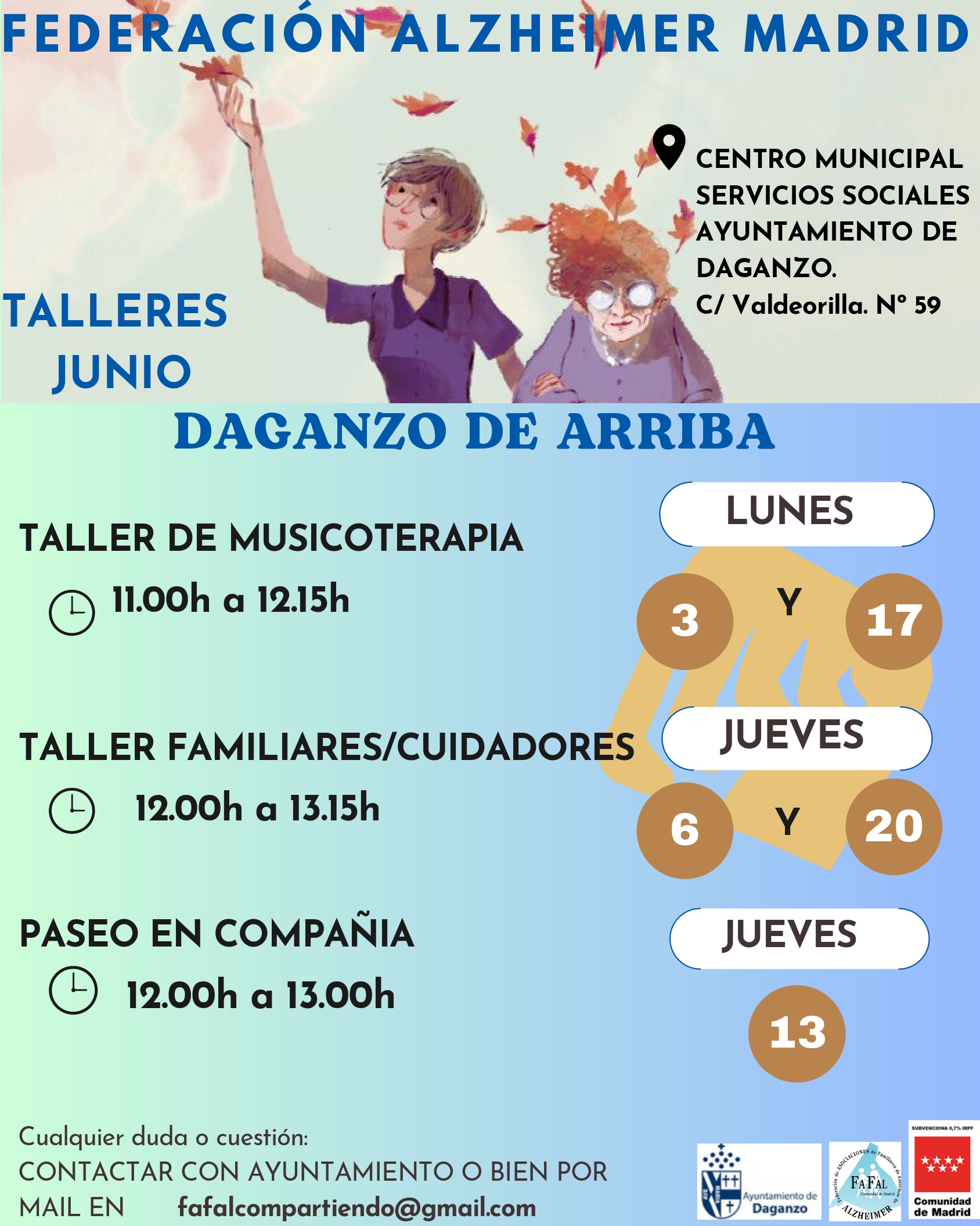 Cómo veis hay actividades para los familiares o cuidadores, otros sólo para las personas afectadas por el Alzheimer u otros deterioros cognitivos, un taller de Musicoterapia para compartir experiencias ambas partes y un paseo en compañía.